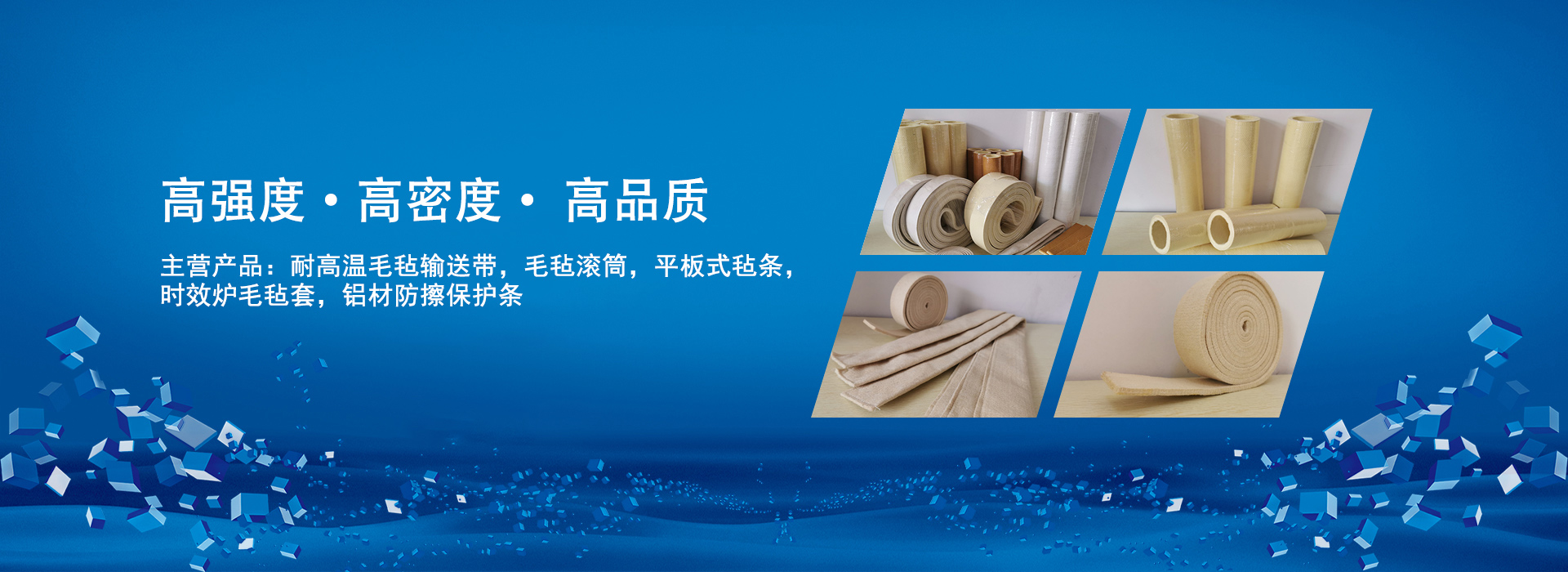 上海无码人妻精品一区二区蜜桃色(chéng)貿易有(yǒu)限公司專注於鋁(lǚ)型材工業氈的設計、研發和銷售一體化服務,為國內外客戶提供高強度、高(gāo)密度、高品質的產品,用心服(fú)務企業(yè),提供全方位的解決方案。公司主營產品:鋁材擠壓機滑(huá)出台生產線配套用耐高溫毛氈輸送帶(600度/500度/280度/180度),毛氈滾筒,平(píng)板式氈條(tiáo),時效爐毛氈套,鋁材防擦保護條等。
